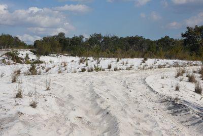Surplombant le bord droit de la dune, un bois de résineux abrite de nombreux Drosera menziesii.